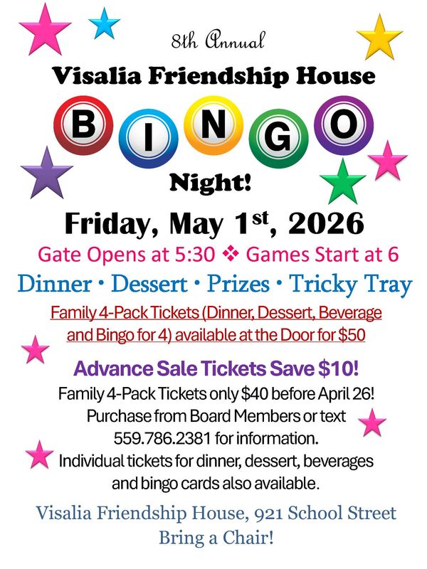 Location: Friendship House, 921 W. School Ave., Visalia, CA 93291